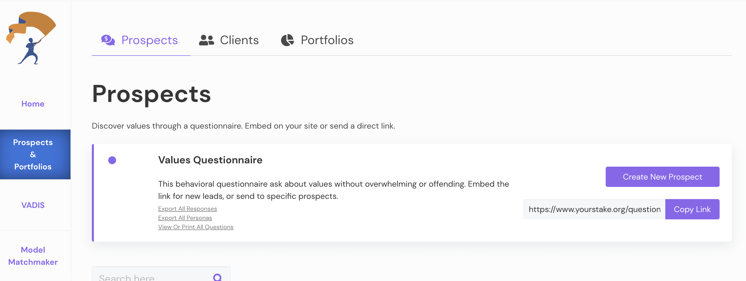 First, the prospect's portfolio needs to be created/uploaded (either manual entry- ticker, by ticker or by Uploading a CSV)